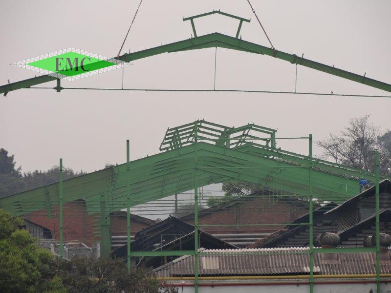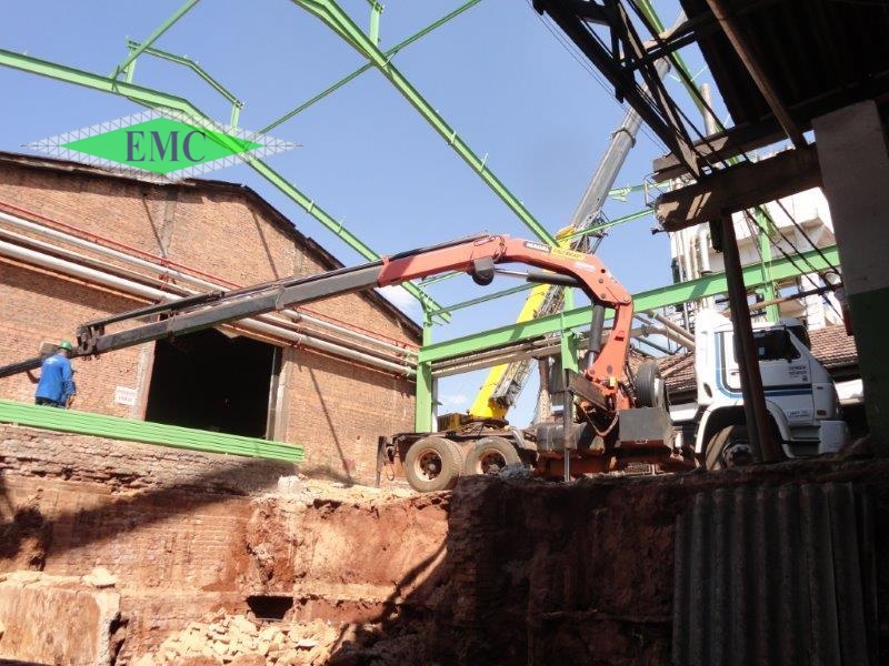 Descrição: ESTRUTURA METÁLICA ROBUSTA , PARA MOVIMENTAÇÃO COM PONTE ROLANTES E O DETALHE FOI, A MONTAGEM QUE FOI FEITA SOBRE O GALPÃO ANTIGO E DEPOIS O MESMO DESMONTADO, TRABALHO COM ALTO RISCO.